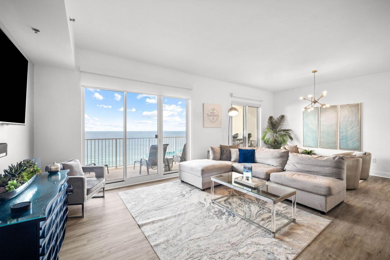 This stunning 4B/4B Penthouse Condo with breathtaking, panoramic views of the Gulf will have you at H E L L O! Enjoy the pristine views from your living room, dining room and primary bedroom or step onto one of two balcony's offering a mesmerizing scene from sunrise to sunset! Rarely does a property of this caliber with it's high-end design, tasteful finishes, and unique floor plan become available. This priceless gem is located in Seascape Resort, a gated community that offers a 2000 ft private beach, golf, tennis, pickleball, multiple pools, and Cabana Cafe restaurant/bar on the ground floor! This turnkey fully furnished property will make an excellent rental investment, second home or primary residence. Buyer and Buyers agent to verify all information Herein