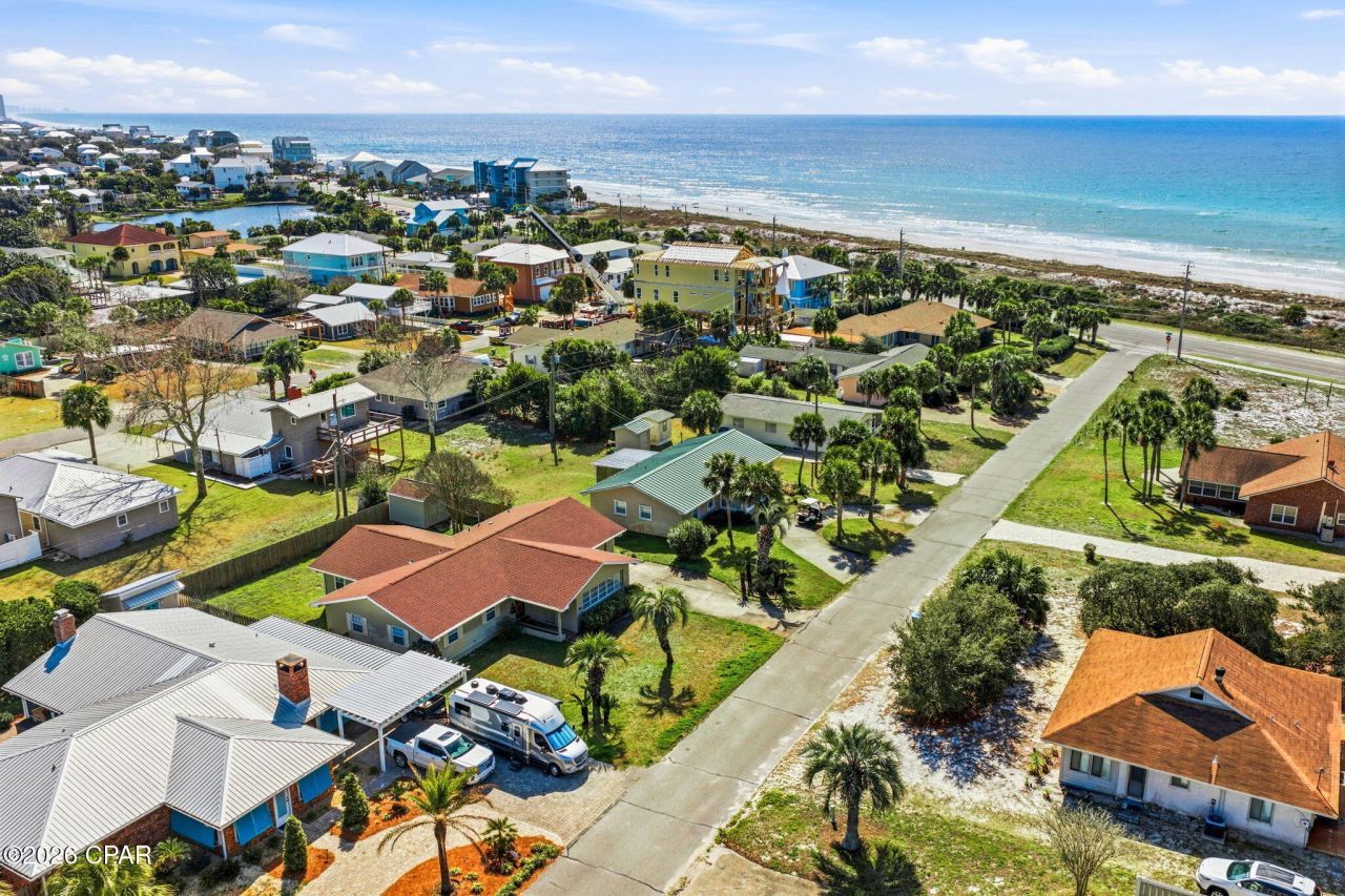 Santa Monica Beach is one of the most coveted neighborhoods in Panama City Beach for good reason, the POA owns the incredible 1,250 feet of sugar white beach in front of the neighborhood, giving residents a 4. 3 acre private oasis. While other families are clamoring for beach space, the next owner of 126 Buena Vista Ave is only 350' from tranquility. Relax and listen to the waves crash on your private beach. Once you've had your fill of sun and fun on the beach, you can enjoy your charming beach home just 4 houses back from Front Beach Rd with Gulf views from the sunroom. Built in 1972 and lovingly cared for there's approximately 2,000 SF of living space with 3 bedrooms, 2 baths and 2 large entertaining spaces, the living room and sunroom in the front with views of the beach and a new family room in the back with hurricane rated windows. A huge bonus is the new roof and new septic system with drain field installed in front so the back is open for a pool. The single car garage is perfect for storing all of your beach necessities or it could be converted into an awesome bedroom with en suite. Located on the West end of Panama City Beach you're close to Pier Park and all of the amenities and in the opposite direction, the upscale shopping and dining of 30A!