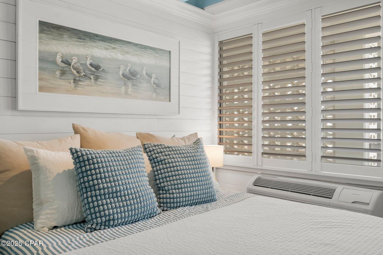 Now is your chance to own one of the most stunning Gulf Front Studios in all of PCB with Owner Financing and no outstanding HOA special assessments due! Sellers have fully paid off all of the existing special assessments. This unit has been meticulously remodeled with amenities that you rarely see in a unit of this size. The bright and airy kitchen features modern lighting along with white shaker cabinetry, granite countertops, a full-size refrigerator, electric cooktop and a separate toaster oven/convection/air fryer. The bathroom features a built-in white shaker vanity with granite countertop, coastal design mirror, modern lighting, and shiplap walls. The bedroom and dining area walls are all white shiplap and decorated with boat oars, coastal artwork, and a wall mounted flat screen TV. The windows have custom wood shutters that open to reveal a stunning view of the Gulf of Mexico. All flooring in the unit has been updated as well with natural wood-look LVP. This vacation condo is self-managed, has a strong rental history, and future bookings may be conveyed. Contact us today for your private showing of this incredible investment gem that is located only one mile from Pier Park, the newly opened Dolly Parton Pirate Dinner Theater, and the upcoming Topgolf. Note: Monthly HOA fee of $895 includes???????????????????????????????? electricity!