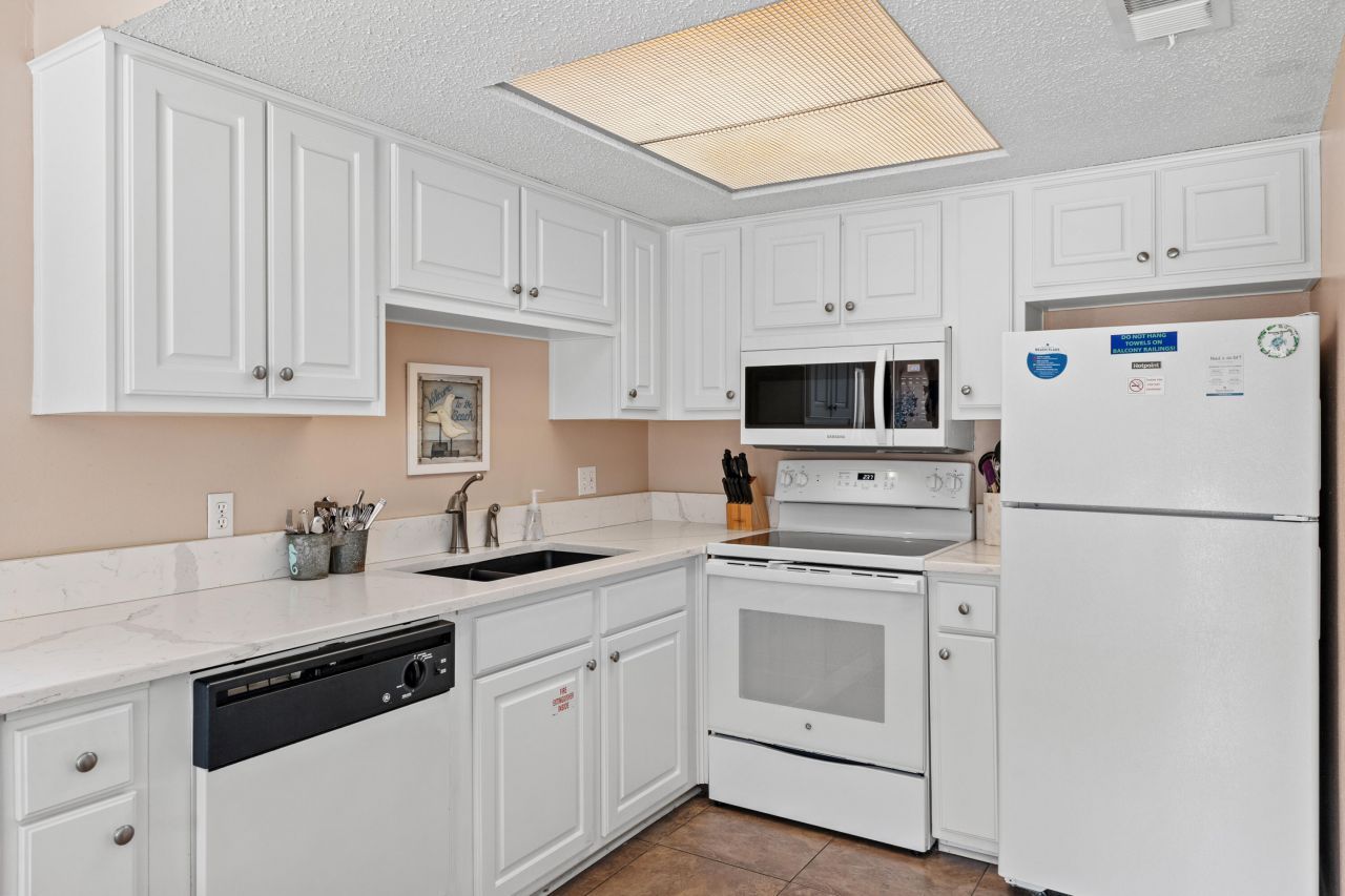 Only Summer Breeze Condo Currently For Sale. End Unit w/ Extra Windows In LR & BR. Ground Floor Convenience, No Stairs or Elevators. Kitchen Was Updated w/Granite Counters, Undermount Sink, White Appliances. New HVAC in 2024. Living Area Looks Out To Green Space. Ever Popular Built In Hallway Bunk Beds w/ Pocket Door to Close Off From LR. Primary BR w/ King Bed & Bathroom Access. Sleeper Sofa in LR = Unit Sleeps 6. From Deck You Can See The Waves. Convenient Location Only Steps From Pool, Hot Tub, & Parking. Complex Is North Of Gulf-Front Miramar Park w/ Bathrooms & Pompano Joe's Seafood Restaurant. Stroll To Lunch & Dinner. Building Exterior Renovated in 2024 w/ New Pool Decking, Fencing, Balconies, Railings, etc. Make This Your Place To Enjoy Refreshing Gulf Waters & Cool Sea-Breezes!!