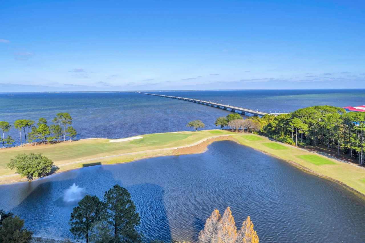 This impeccably designed residence offers three spacious bedrooms and an abundant open living area, beautifully furnished with designer pieces that enhance both comfort and style. A striking mahogany double-door entry with opaque glass sets a dramatic tone upon arrival, leading into living spaces finished with wood-look plank tile and extensive windows that frame breathtaking panoramic views of the Choctawhatchee Bay. The chef's kitchen is a true showpiece, featuring gorgeous floor-to-ceiling cabinetry, a brick-inspired tiled backsplash, granite countertops, and high-end Viking appliances, including a wine cooler. Two fabulous, oversized kitchen islands create exceptional flow for entertaining and everyday living. A long, elegant hallway is accented with custom built-in bookshelves, while the guest half bath is elevated with sleek, sophisticated wallpaper. Each bedroom is finished with cozy plush carpet, and the primary suite offers a private retreat complete with professionally designed closets and an opulent spa-like bath featuring a spacious soaking tub and a separate walk-in shower. Additional interior highlights include a large laundry room, a bonus room ideal for flexible use, and fabulous designer fixtures throughout. Outdoor living is equally impressive, with a wraparound balcony that dramatically expands your space. The balcony is fully equipped with an outdoor grill, refrigerator, and sink, perfect for cooking, dining, and enjoying the coastal breeze and stunning bay views. Resort-style amenities complete this exceptional offering, including a two-tier pool and hot tub, fitness center, spa and sauna, dog park, hobby and game rooms, guest suites, and two deeded covered parking spacesdelivering luxury, convenience, and lifestyle all in one remarkable residence. The Kelly Plantation neighborhood encompasses miles of walking trails, rubico and hard tennis courts, pickleball, basketball, ponds, a community gathering center, a gym, a huge pool and gated security at both entrances.