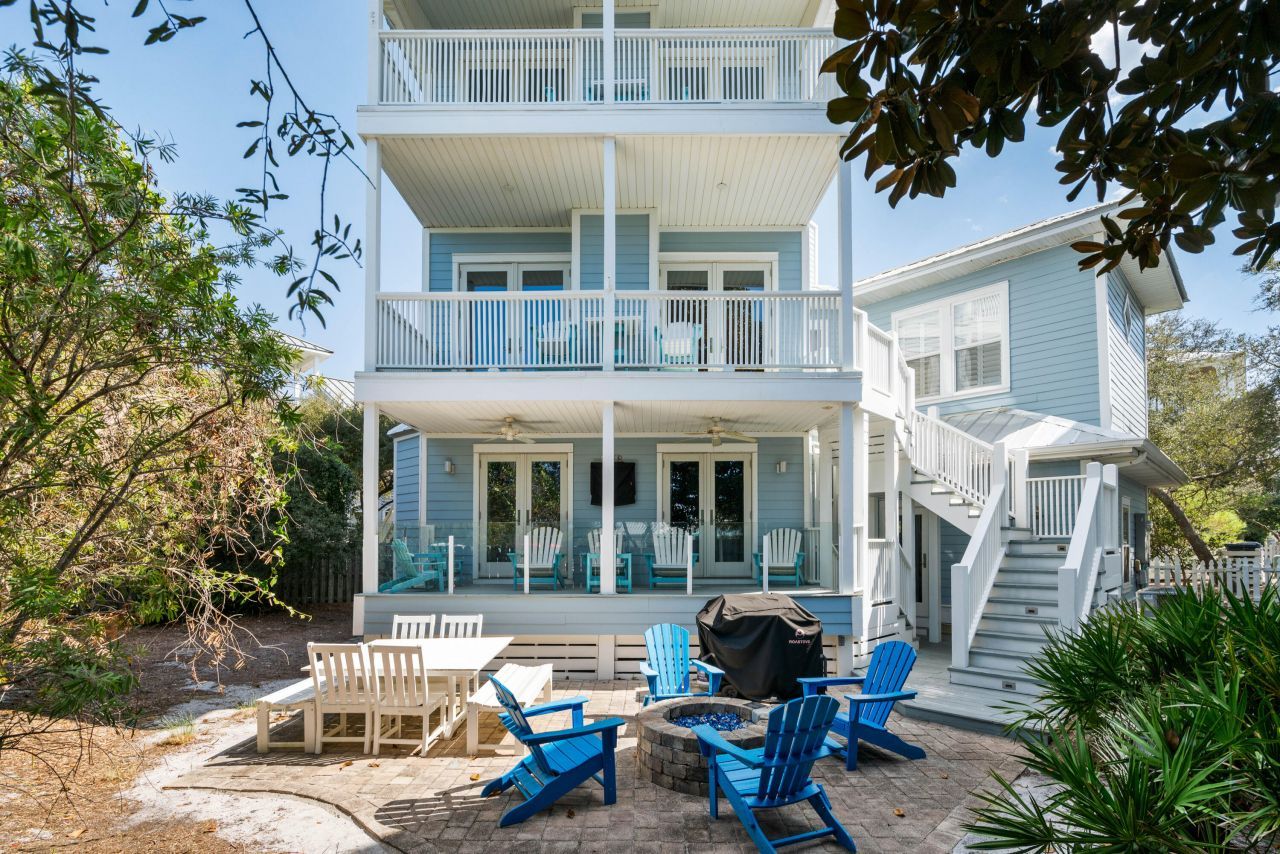 100 yards from the sand with private neighborhood beach access, this home delivers the coveted south-of-30A lifestyle. Gulf views and breathtaking sunsets - Magazine Worthy - from this fully furnished coastal retreat seem like a dream. Its time to make it your Reality.Multiple covered balconies on the second and third floors frame amazing water views. The second-floor living and dining spaces are tiered toward the Gulf, creating a backdrop of blue from nearly every angle. The kitchen is equipped with custom cabinets, Cambria quartz counters, gas cooktop, and oven for the perfect dining experience. A breakfast bar flows into the dining area, while the living room offers a fireplace, Cambria-topped wet bar, and French doors opening to the balcony. The third-floor master suite spans the entire level, featuring hardwood floors, a private fireplace, walk-in closet, spa-style bath with jetted tub and glass shower, and a balcony overlooking the Gulf. A added bunk room with full bath enhances guest accommodations, while two additional bedrooms occupy the first floor with access to a shaded backyardoffering space to add a private pool.Additional highlights include a beachy exterior, lush landscaping, two-car garage, and a metal roof replaced just 3 years ago. Owning a home on 30A has never been more attainablethis property is already producing rental income, allowing buyers to walk into a money-making opportunity from day one. Old Florida Beach also offers a heated community pool, multiple beach access points, and a prime location close to shopping, dining, and entertainment at Gulf Place. has heated community pool, Draper lake dock, and 3 private beach accesses. Full-time residents or as a vacation rental it is the best opportunity on the beach.