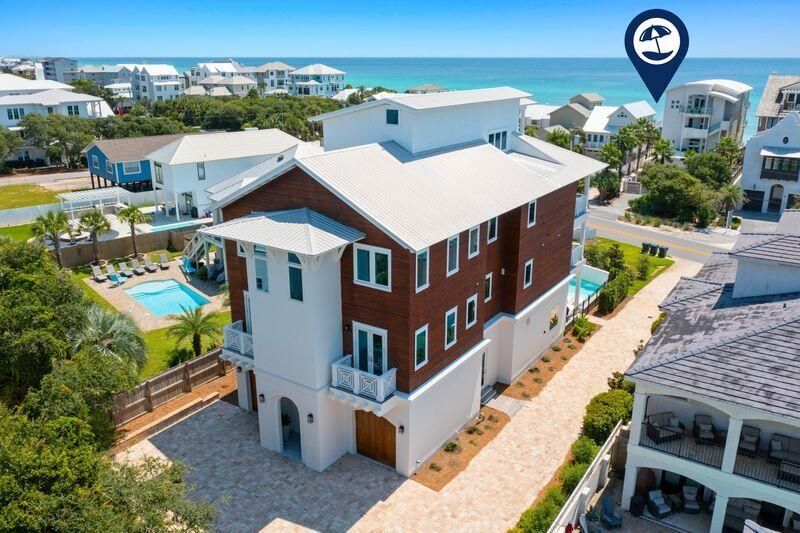 With rental projections over 500K and over 430K in actual bookings this home is a RARE 30A GEM! This home has been redesigned and curated to truly maximize all 7000 sq ft of living and sleeping spaces - with the new additions of a gaming area and 2 bunk bedrooms. Situated in the heart of 30A, this property blends modern elegance, high-end furnishings, and a design that maximizes both gathering areas and sleeping accommodations?making it ideal for family retreats and very strong rental performance. This 8-bedroom residence features 6 private ensuite bedrooms for ultimate comfort, along with 2 newly designed custom bunk rooms that optimize sleeping capacity without sacrificing style. Multiple living areasincluding a grand main living room, secondary den, and a game roomprovide ample space for relaxation and entertainment. A dedicated office/workout room ensures flexibility for today's lifestyle needs.The gourmet kitchen, appointed with luxury appliances and premium finishes, flows seamlessly into the main living area, creating the perfect setting for hosting large groups. Spa-inspired bathrooms throughout the home are finished with modern touches that elevate everyday living.The outdoor spaces are equally impressive, with a resort-style pool and spa, multiple sun decks, and three expansive Gulf-view balconies designed to capture breathtaking sunsets. A long private driveway and generous parking add convenience for owners and guests alike.Deeded beach access just steps away ensures the sugar-white sands and emerald waters of the Gulf are always within reach.Perfectly positioned, the property is minutes from Alys Beach, Rosemary Beach, and Inlet Beach, offering world-class dining, boutique shopping, and the sought-after 30A lifestyle.Already established as one of the premier new luxury rentals on 30A, this home comes with an exceptional investment opportunity: the current owner is offering to assist with property management for the first year at a reduced percentage, creating a seamless turn-key experience.With its unmatched size, prime location, high-end furnishings, and exceptional income potential, this residence stands apart as The Crown Jewel of 30A.